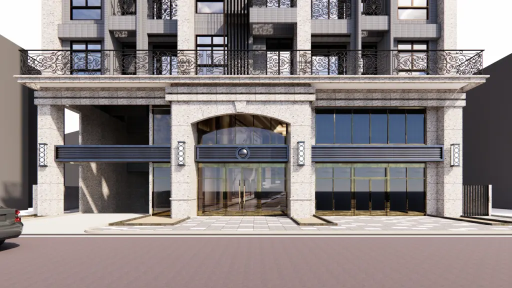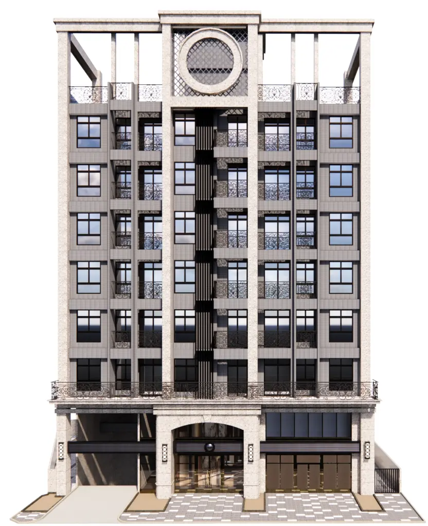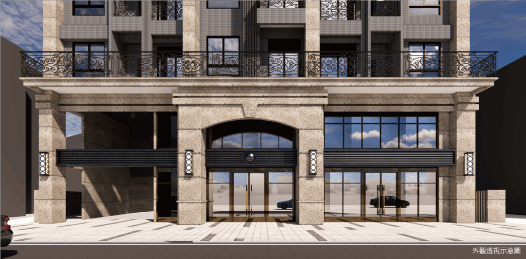 以新古典建築外觀,致敬「輕奢生活」。石材勾勒建築層次與美感,輔以鑄鐵雕花欄杆的典雅氣韻,從基座到立面,深入建築的肌理,在您的進與出之間,展現榮耀與尊榮,鐫刻一座屬於年輕貴族的名宅典範。